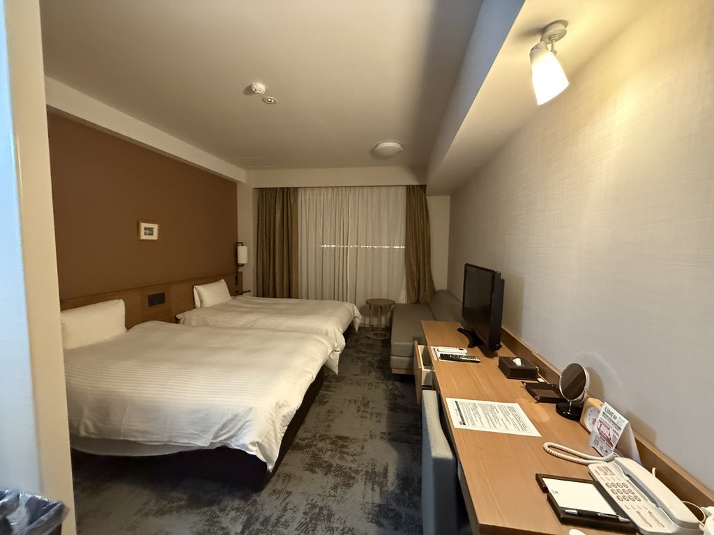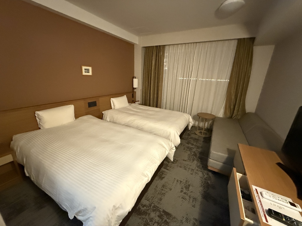 ▲我們入住的是兩張大床的房型,空間寬敞不壓迫,房內備有冰箱、桌子等基本設施,浴室還有浴缸可以泡澡。雖然整體裝潢稍顯老舊,但乾淨度與功能性都維持得不錯,地點又非常方便,讓人覺得依舊是個值得入住的選擇。
