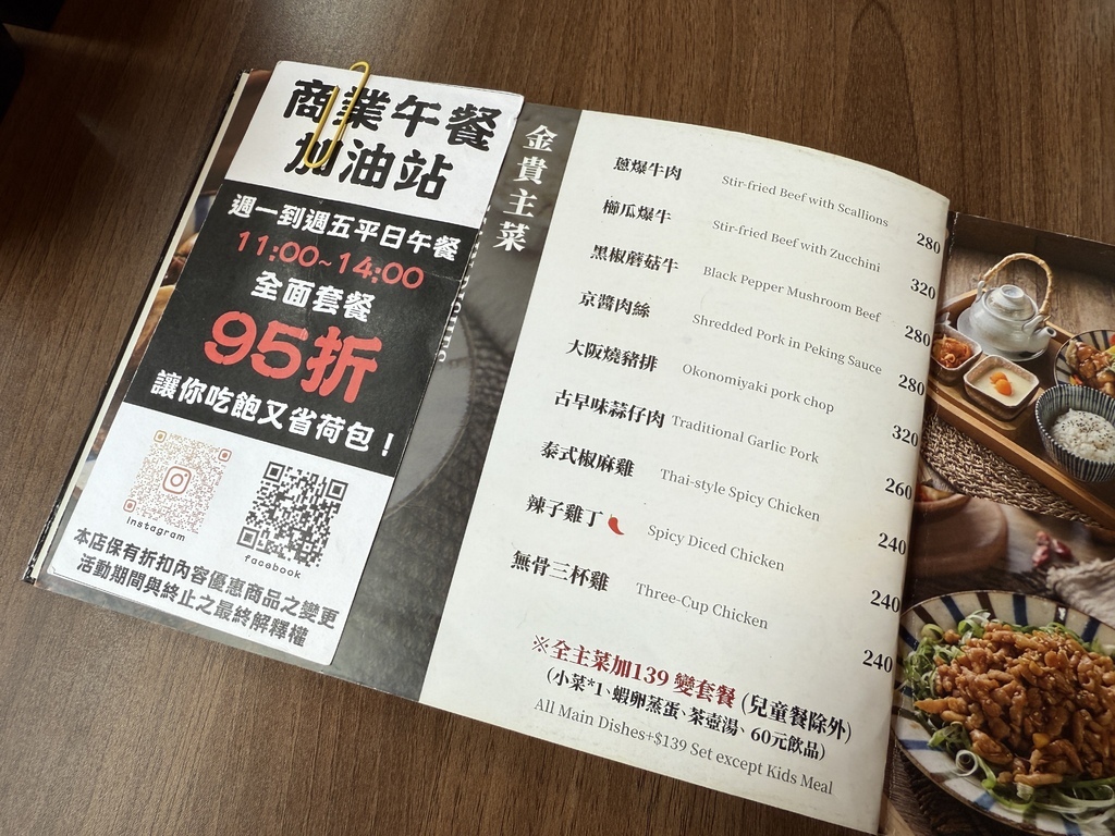 ▲位在大樂商圈的金貴中式料理,前身同樣是餐廳,因此店面空間寬敞舒適。金貴與隔壁的露易莎、全聯比鄰而居,地點方便好找。店內主打道地台式料理,從剝皮辣椒雞、牛肉蛋花湯到炸湯圓都能吃得到。用餐方式是先選擇主餐,像是京醬肉絲、蔥爆牛肉等經典菜色,再加價139元升級套餐,就能享有小菜、蝦卵蒸蛋,以及一杯60元的飲品,讓一餐吃得更豐富滿足。