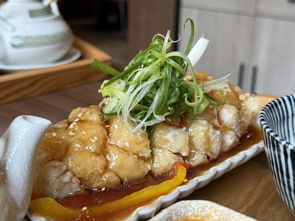 ▲糖醋松鼠魚($320+139), 糖醋松鼠魚是一道極具功夫的經典料理,從魚身精細的刀工開始,將魚片得整齊漂亮,經高溫炸到外層金黃香酥、內裡仍保有鮮嫩口感,再淋上酸甜交融的醬汁,滋味層次分明、香氣撲鼻。每一口都是外酥內嫩、酸甜平衡的絕佳享受,醬汁搭配白飯更是完美,讓人忍不住一口接一口,不小心就能吃上好幾碗。這道菜不僅色香味俱全,更展現了主廚的用心與料理技藝。