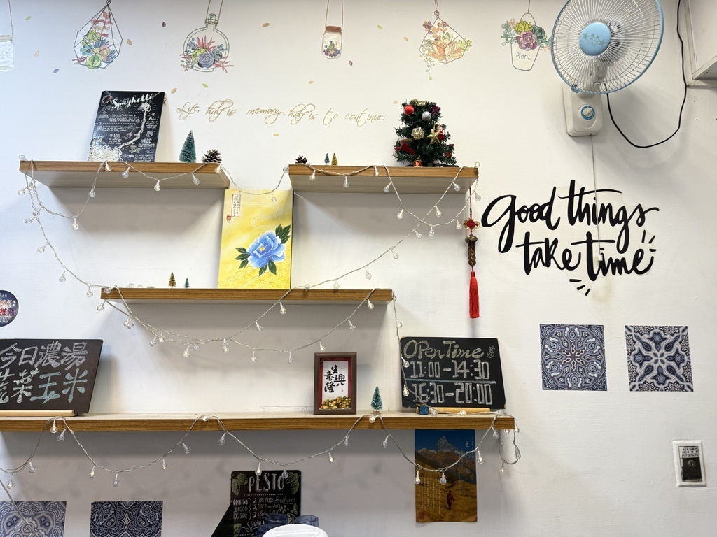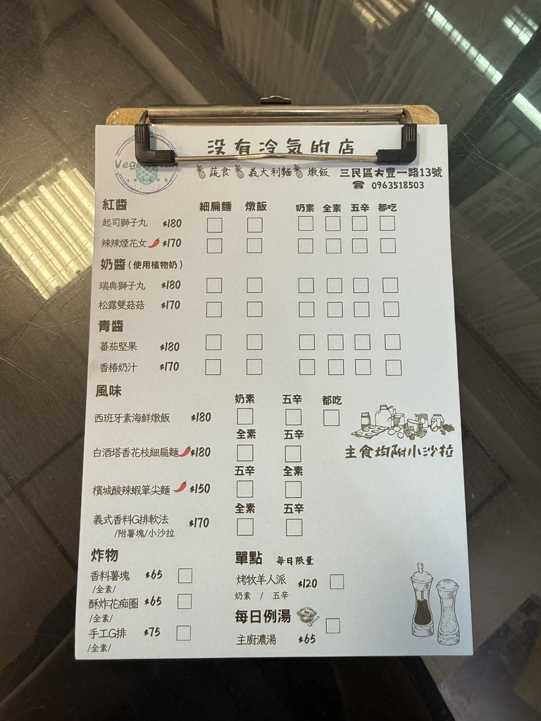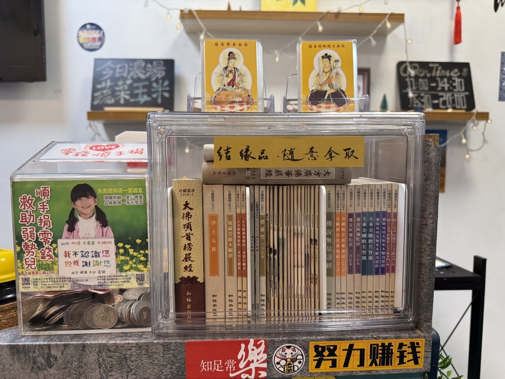 ▲走進高雄三民區建工商圈,在建工路與大豐路交叉口附近,有一家讓人忍不住停下腳步的蔬食小店——「沒有冷氣的店」。雖然店名聽起來有些挑戰高雄的酷暑,但其實店裡是有冷氣的,讓人一踏入就感到安心與清涼。這間店空間不大,卻充滿溫度與巧思,牆面與櫃檯擺放了不少佛系擺設,營造出一種靜謐、沉穩的氛圍。對於喜歡安靜用餐的朋友來說,這裡很容易讓人放慢步調。
