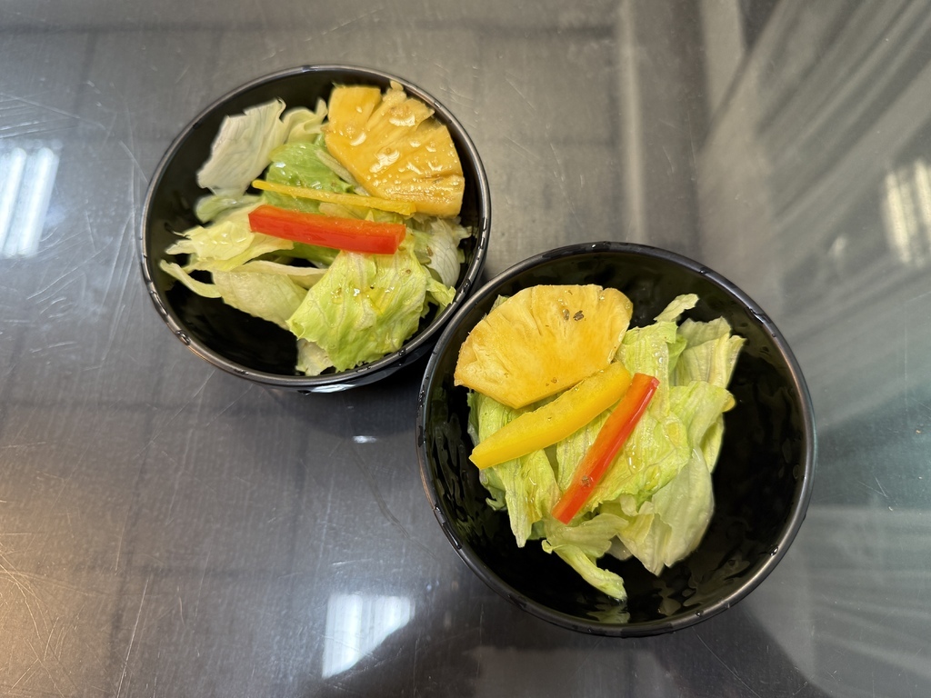 ▲前菜是酸甜的生菜加水果,清脆香甜,吃完就整個開胃。