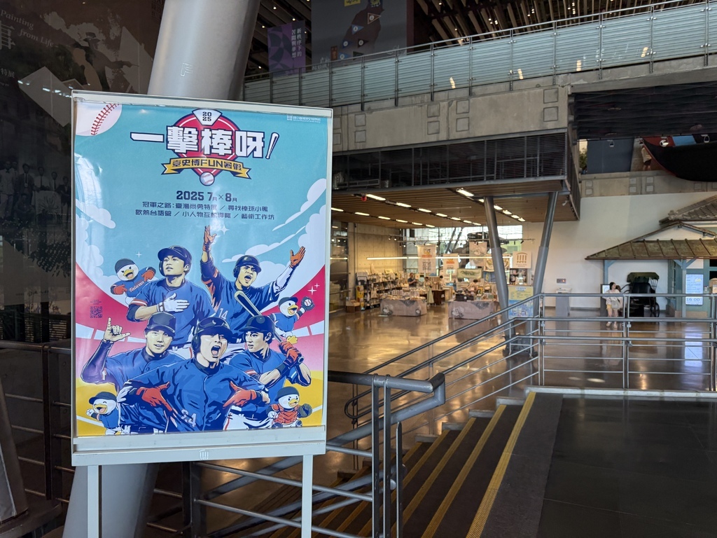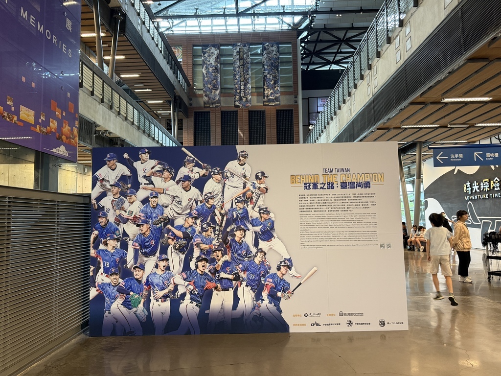 ▲還沒踏進展場,就先被入口處的視覺震撼吸引——TEAM TAIWAN的帥氣團隊海報與大型看板高掛在博物館大廳,球員們身穿藍白戰袍、眼神堅定,彷彿正準備迎戰世界強敵。整體設計氣勢十足,不僅展現出冠軍隊伍的自信與榮耀,也瞬間點燃觀眾心中的棒球魂,讓人迫不及待想進場感受這場榮耀之路的精彩展覽。