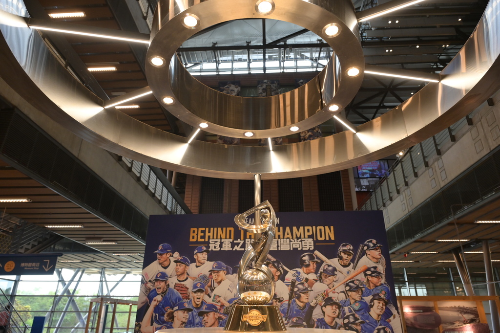▲一走進展場,最先映入眼簾的就是閃耀著光芒的冠軍獎盃,直接陳列在中央區,毫無遮掩地展現它的榮耀與份量。獎盃金光閃閃,在燈光照射下格外耀眼,彷彿正向每位觀眾訴說著臺灣棒球在世界舞台上奪冠的精彩歷程。這樣的開場不只震撼,更瞬間喚起心中那份熱血與驕傲。