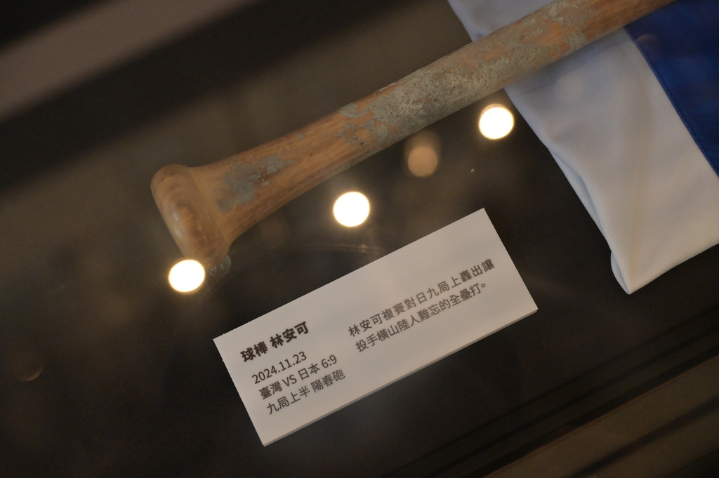 ▲展出林安可的球棒,這可是打出全壘打的球棒啊。