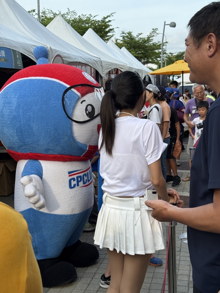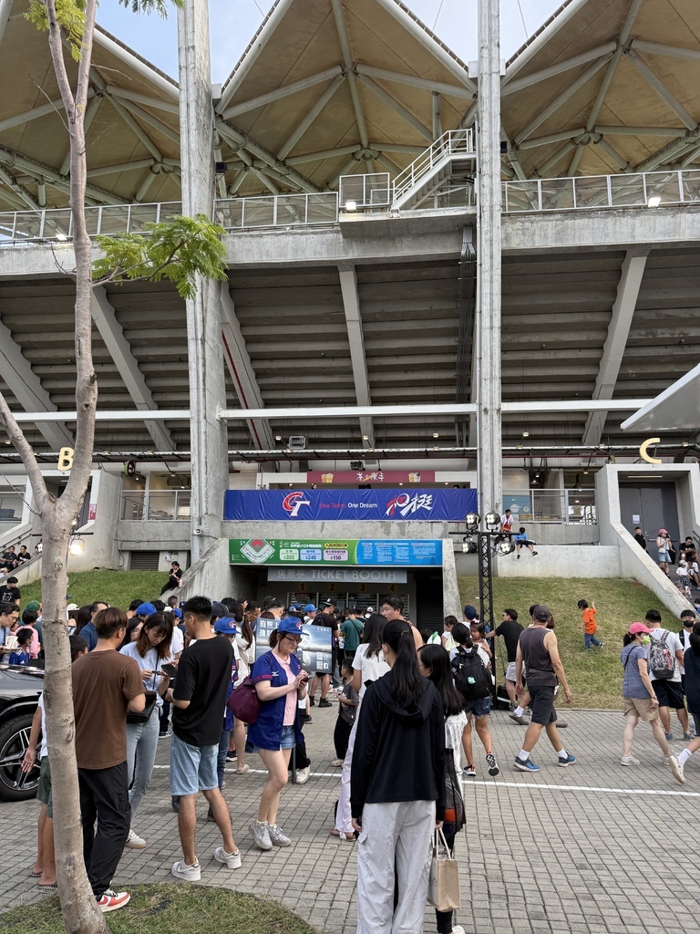 ▲終於進場啦!人潮比想像中還多,一進門就拿到兩隻贊助商提供的氣球拉拉棒,瞬間進入應援模式。順手買了包芭樂,邊看邊吃超有儀式感。球場的動線設計很簡潔,通道不長,走上樓梯就能直接到座位,整個流程順暢不擁擠,讓人輕鬆享受比賽氣氛!