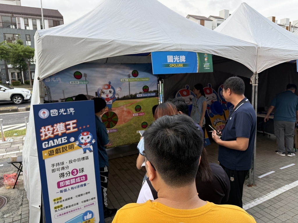 ▲場內設有紀念品區,可以選購各式賽事限定商品,像是紀念球、T恤、鑰匙掛飾等,滿滿周邊讓人荷包大失血。另一邊還有互動遊戲區,小朋友們玩得不亦樂乎,不過排隊人潮也不少,記得早點卡位!現場還展示了冠軍獎盃,近距離感受榮耀時刻,讓人不由自主地多拍幾張照留念。整體氛圍熱鬧又有紀念價值,很值得一逛!