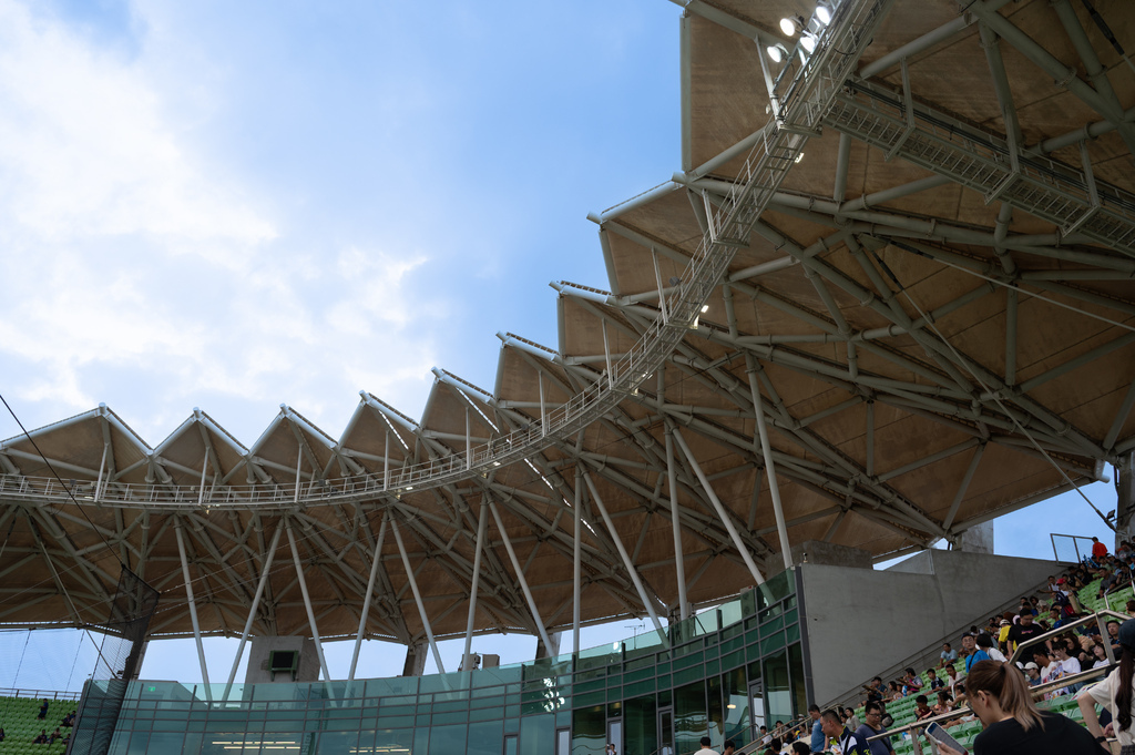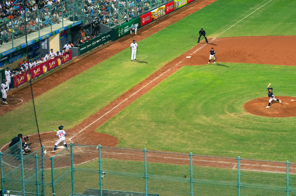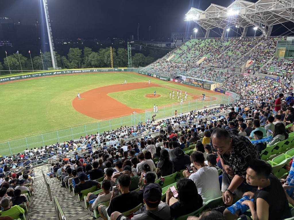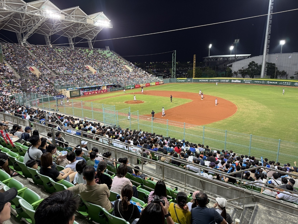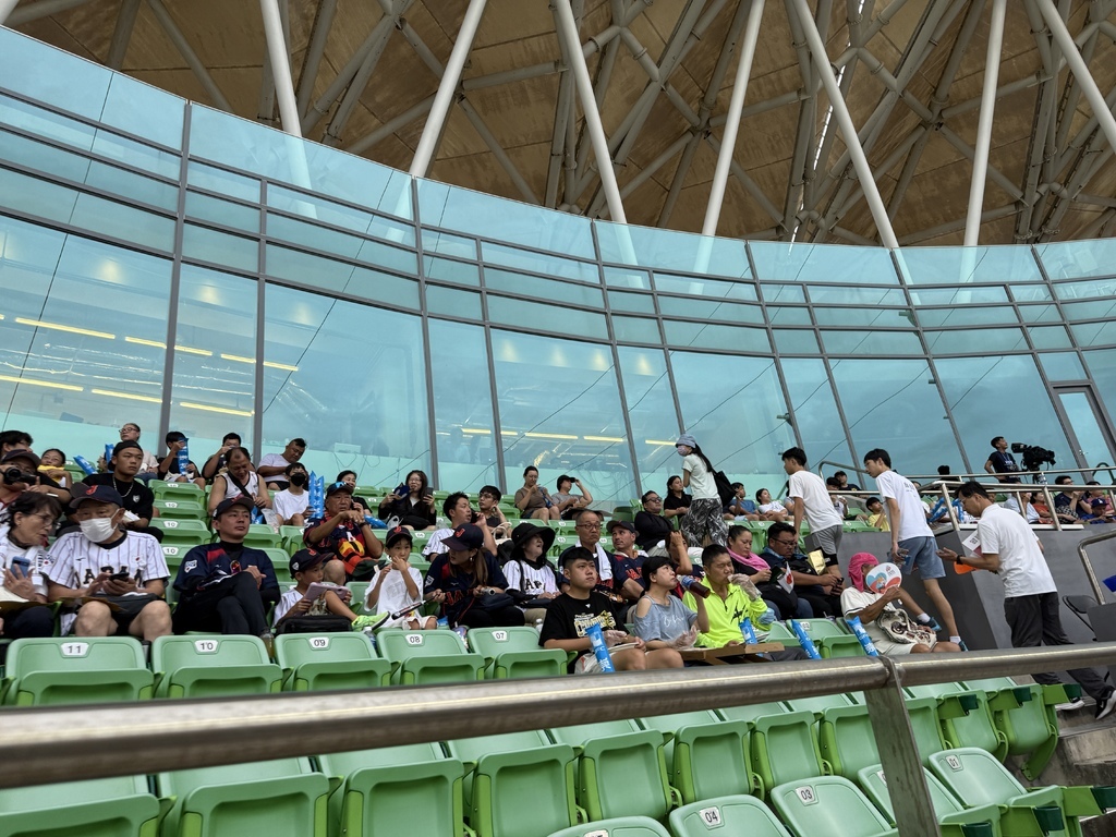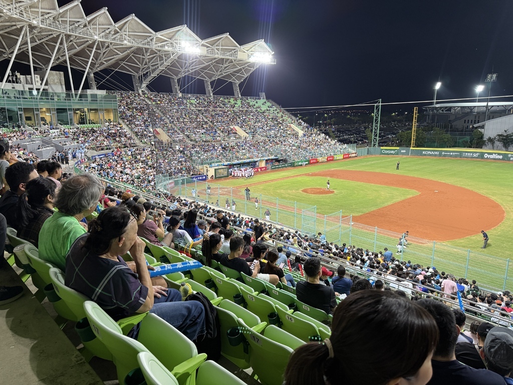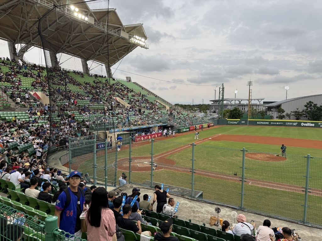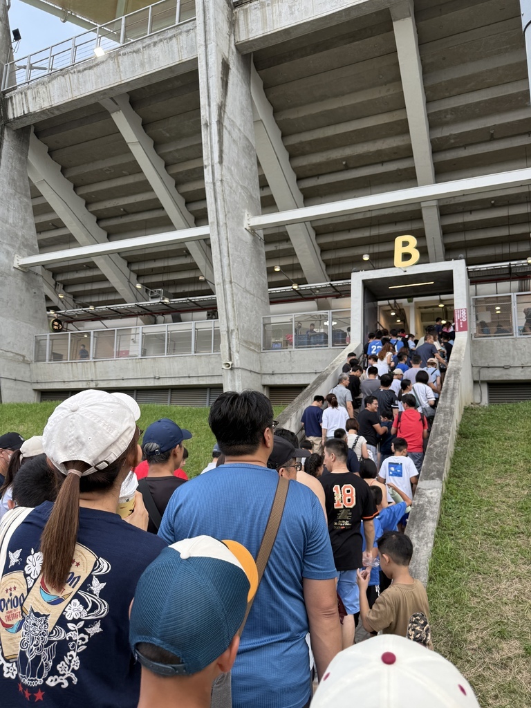 ▲因為原本座位的視線被網子遮住,我就趁中場時間跑到對面的空位區和最上排去看看。結果意外發現最上排的視野居然超棒!不但沒有遮蔽,還能更全面地欣賞比賽,空氣也比較流通,坐起來相當涼爽舒適。下次再來這裡看球,我可能會直接選高一點的位置,整體觀賞體驗真的好太多。
